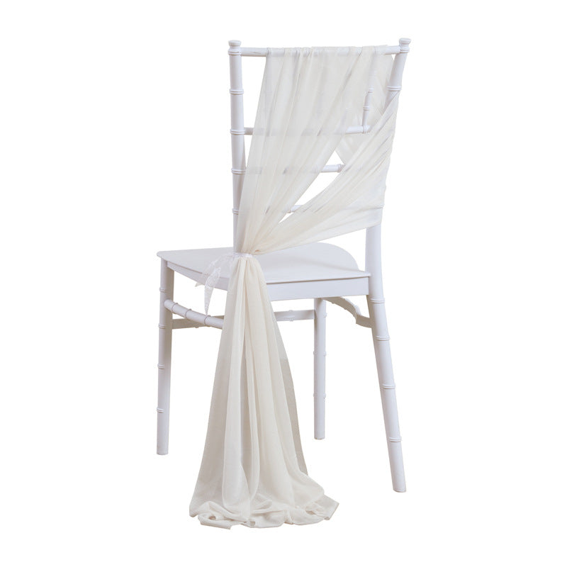 5pcs Pack of Chiffon Chair Sashes/Ties 8" x 100" Ivory White