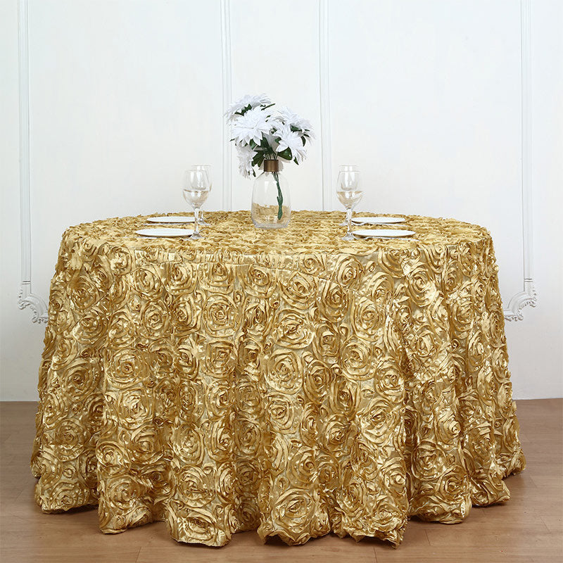 Grandiose 3D Rosette Round Tablecloth Table Cover 130" Champagne