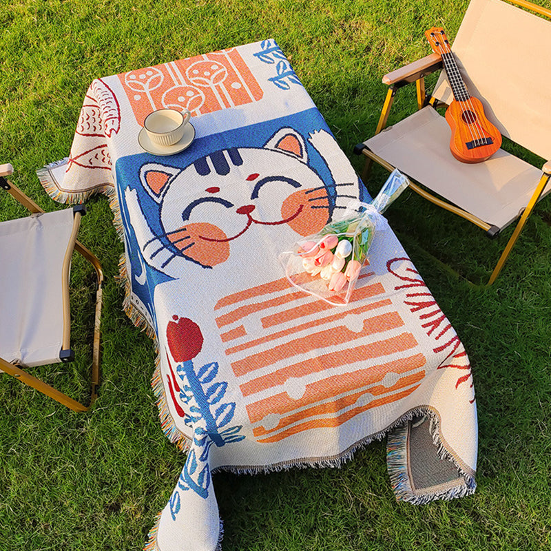 American Country Cotton Fringed Dining Tablecloth, Camping Picnic Mat, Outdoor Living Room Multi-Function Available