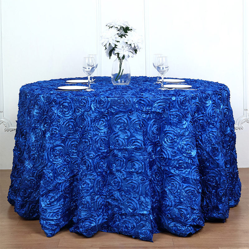 Grandiose 3D Rosette Round Tablecloth Table Cover 120" Royal Blue