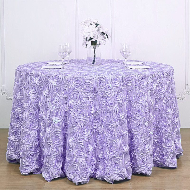 Grandiose 3D Rosette Round Tablecloth Table Cover 130" Light Purple