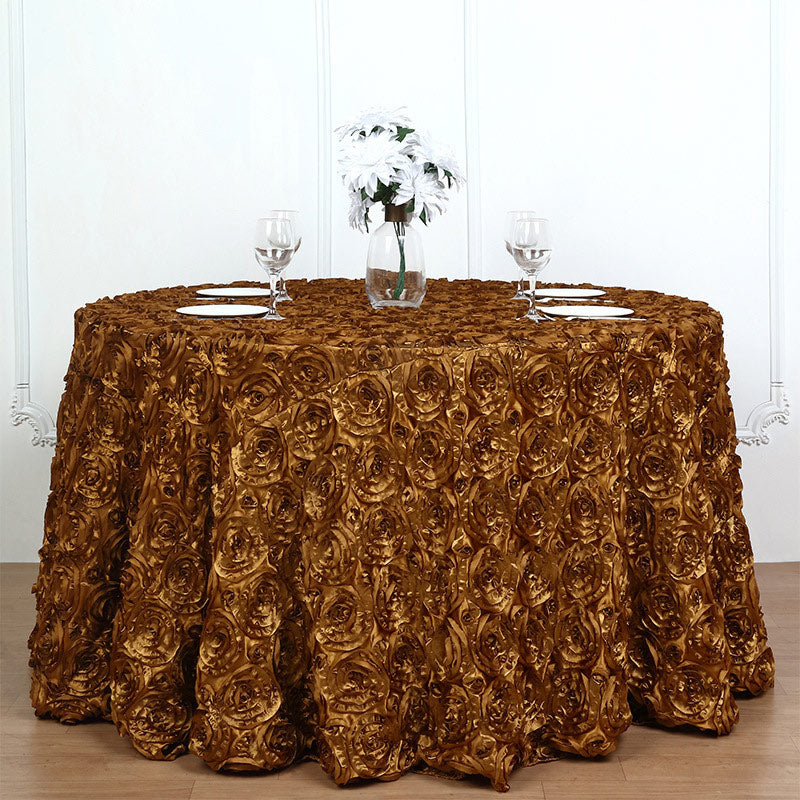 Grandiose 3D Rosette Round Tablecloth Table Cover 130" Gold