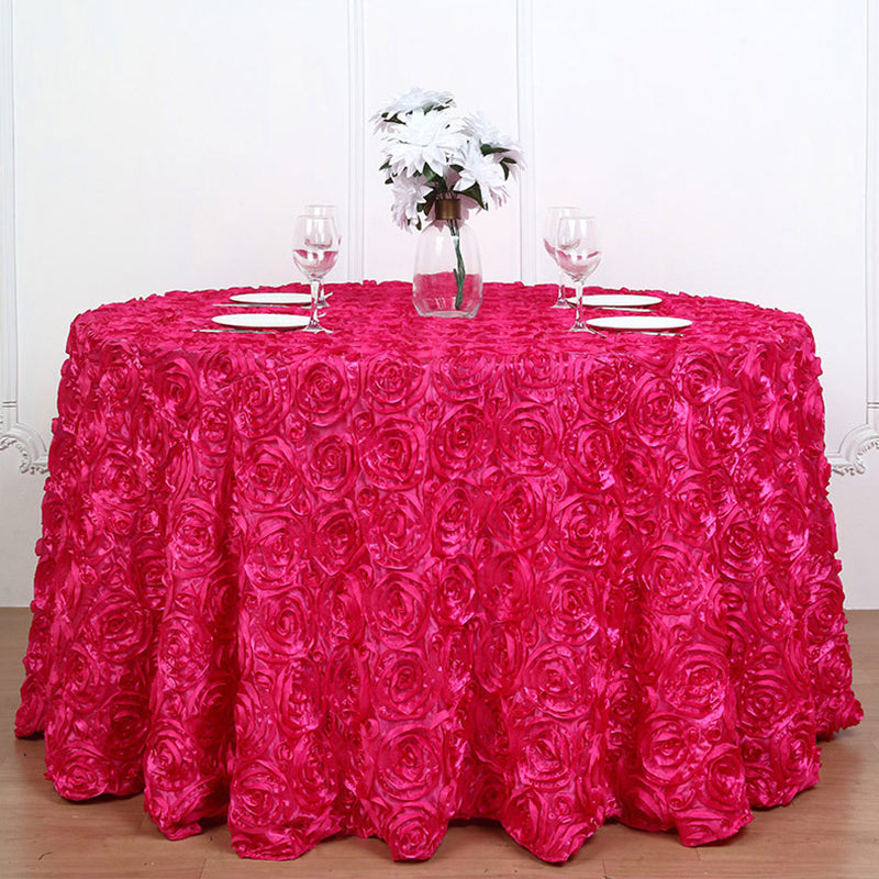 Grandiose 3D Rosette Round Tablecloth Table Cover 130" Rose Red