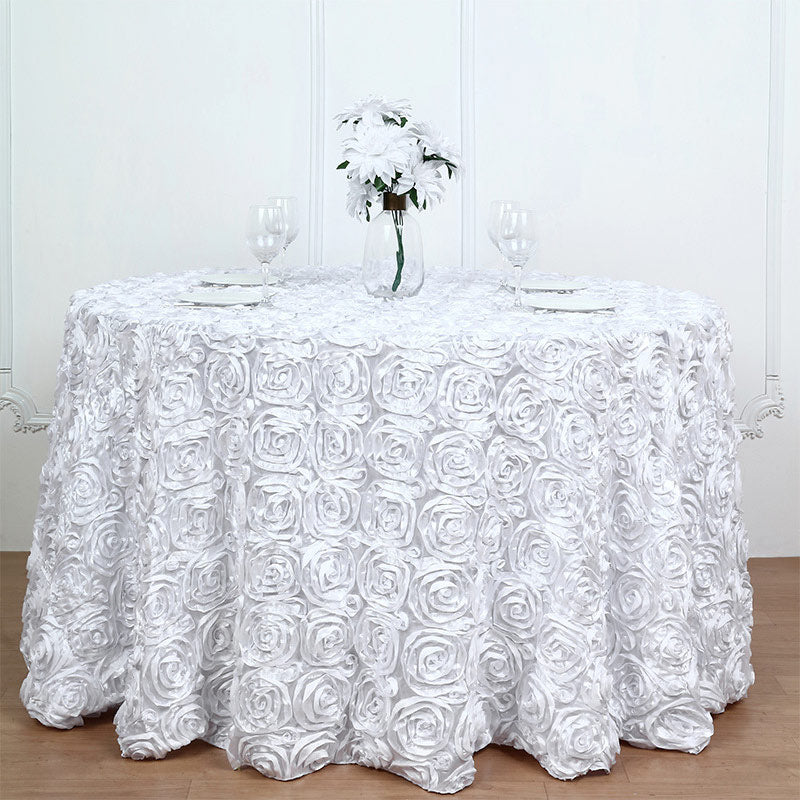 Grandiose 3D Rosette Round Tablecloth Table Cover 130" White